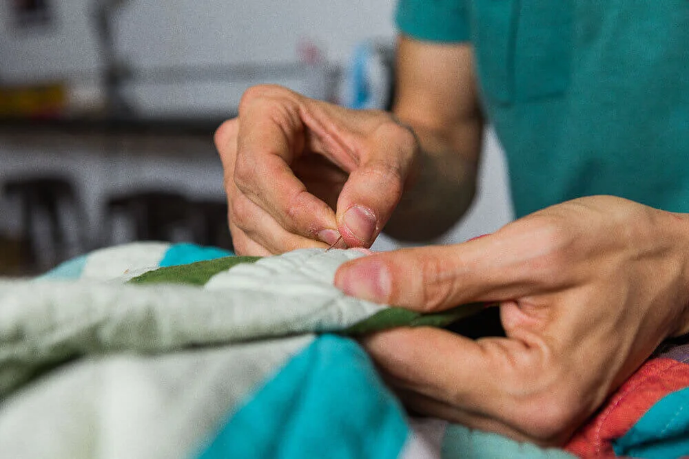 It all starts with the fabrics. I try to get out of their way and let them inform the process and design as much as possible. Color palettes come together, shapes emerge, and as the artist, I watch what’s happening. I love what Anne Truitt says about what she’s looking for her work— the “just noticeable difference”. No two things are exactly alike. To perceive these details takes time and quiet. It’s that just noticeable difference that brings me a deep satisfaction in my work. You can read more about my approach to improv quilting here.