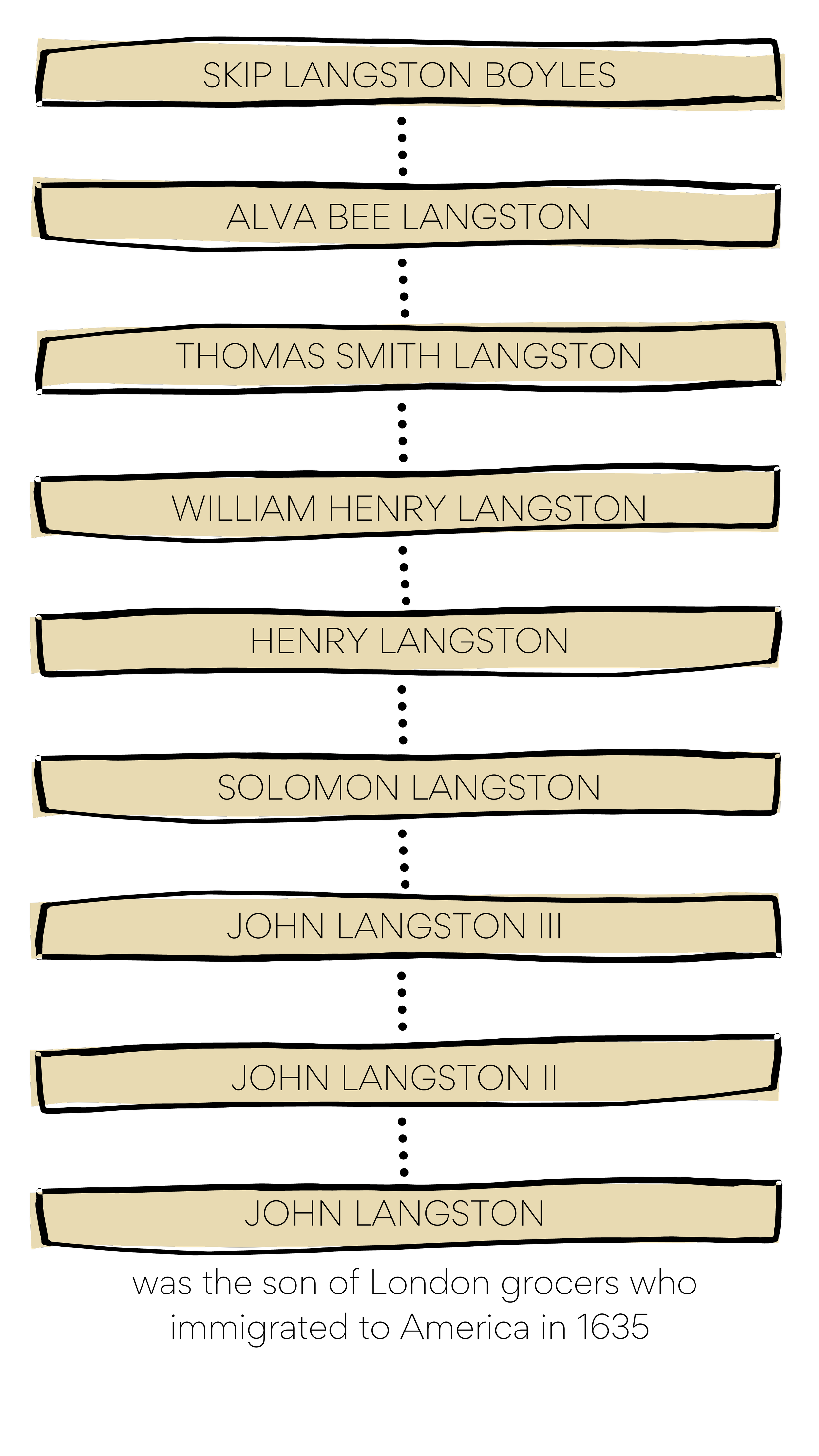 Thomas was just one of twelve generations of Langstons in this country, making the Langston line our oldest family line. John Langston I was the first—leaving his home in England at age fifteen in 1635. The son of a London grocer, John Langston indentured himself to a rich man and came to the Jamestown area to work off his debt. Indentured workers in Virginia were generally able to work their way free in about five years, and they often received fifty acres of land to help them get established afterwards. With that kind of support, John eventually was able to purchase over a thousand acres in New Kent County, just north of Jamestown, becoming a moderately wealthy landowner.