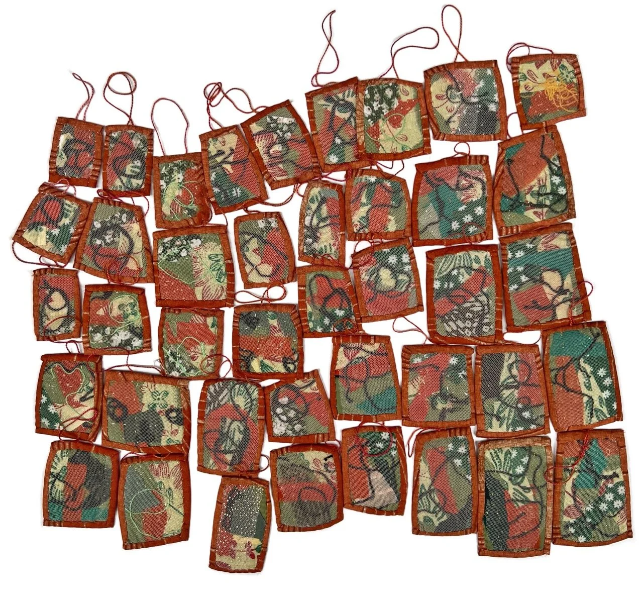 I loved making these little ornaments this year. I’ve been calling them Windowpanes because it feels like a glimpse into what I’ve been working on this year. The ornaments are made from scraps from significant projects in 2022, all held down by tulle, which is an idea I first admired in the work of Pat Kroth who had a show I saw at the Wisconsin Museum of Quilts this summer. I hope you enjoy your new ornament, and know that you are well loved.